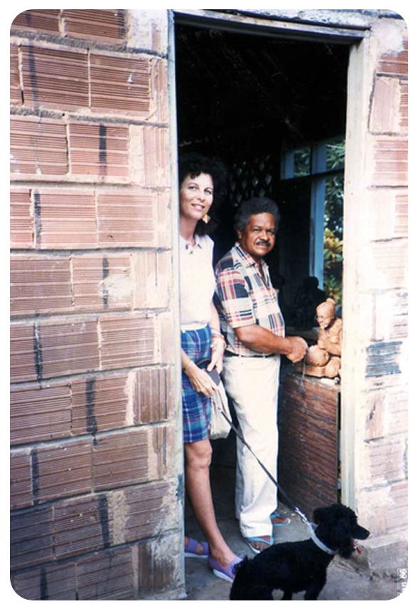 Etewaldo esculpiu uma peça de 1,70m de altura, sob encomenda do governo, para o bosque dos namorados, em Natal. É um casal abraçado, se beijando. Me deu muito trabalho: levantei de barro, depois cobri de cimento e depois descasquei o cimento. Passei um mês trabalhando nervoso, com mêdo que não desse certo. Ela é toda oca, como as peças pequenas, sendo que na pequena eu já tinha o jeito. Na pequena, eu enrolo um cilindro de barro, enfio um graveto pra furar e enrolo de novo.